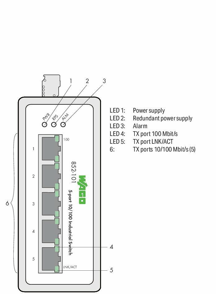 852‐101 Endüstriyel Anahtar, 5 bağlantı noktalı bir 10 / 100Base ‐ TX ETHERNET anahtarıdır.