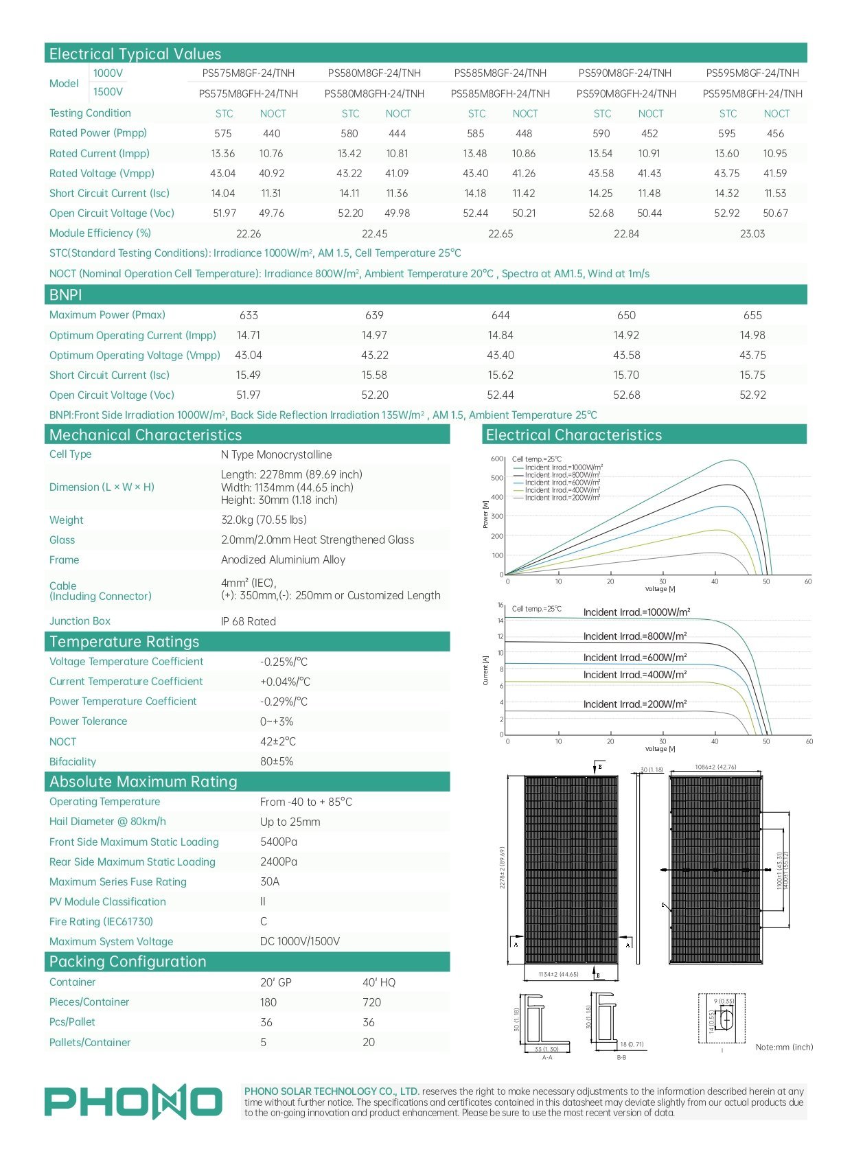 Phono Solar 595Wp TOPCON Güneş Paneli